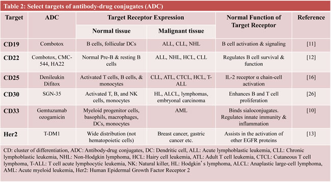 Figure 1: Timeline delineating the evolution of antibody-drug conjugate discovery and therapy in cancer therapeutics [3-6]. ADC: Antibody-drug conjugate, mAb: Monoclonal antibody, DLBCL: Diffuse large B cell lymphoma, DD: Denileukin Difitox, CTCL: Cutaneous T cell lymphoma, GO: Gentuzumab Ozogamicin, AML: Acute myeloid leukemia, r/r: relapsed and/or refractory, HL: Hodgkin’s lymphoma, sALCL: Systemic anaplastic large-cell lymphoma, FDA: Food and Drug Administration, Her2: Human Epidermal Growth Factor Receptor 2, MBC: Metastatic breast cancer.