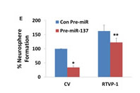 In summary, we found that miR-137 is downregulated in glial tumors and in GSCs and that its promoter is hypermethylated in GBM specimens. In addition, we demonstrated that the inhibitory effect of miR-137 on GSC self-renewal was at least partly mediated by decreasing the expression of the novel miR-137 target, RTVP-1 which led to the downregulation of CXCR4 expression. These results implicate miR-137 and RTVP-1 as new therapeutic targets that regulate self-renewal and differentiation of GSCs.