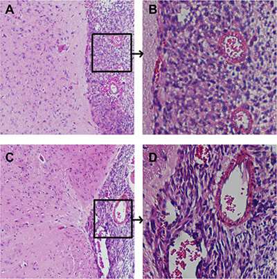 All animal experimental protocols were approved by the Institutional Animal Care and Use Committee of Suzhou University and complied with the code of ethics for animal experiments. Four-week-old male BALB/c nude mice (18–20 g) were bred and maintained in the Specific Pathogen-Free Animal Care Facility. The 105 sorted CD133+ or CD133− SU2 cells were injected into the right caudate nucleus using a stereotactic implantation apparatus to establish xenografts. The mice were used for the following experiments.