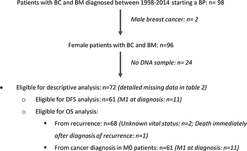 In this retrospective cohort study we included patients followed at Oncology division from Santa Maria Hospital, Lisbon, Portugal, diagnosed with BM from BC between 1998 and 2014, and starting therapy with bisphosphonates (BPs). A total of 72 patients, with available peripheral blood collected at the time of first treatment with BPs, were included.