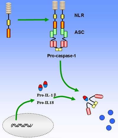Interacts with caspase-1, ASC and NAIP; elevates NF-κB signaling and IL-1β /IL-18 release |