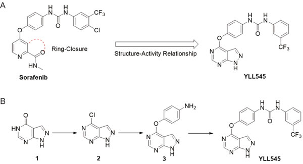 Figure 1: Design, synthesis and evaluation of YLL545. A. Schematic showing the design of compound YLL545. B. The synthesis route of compound YLL545.
