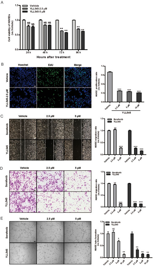 YLL545 inhibits HUVEC proliferation, migration, invasion, and tube formation