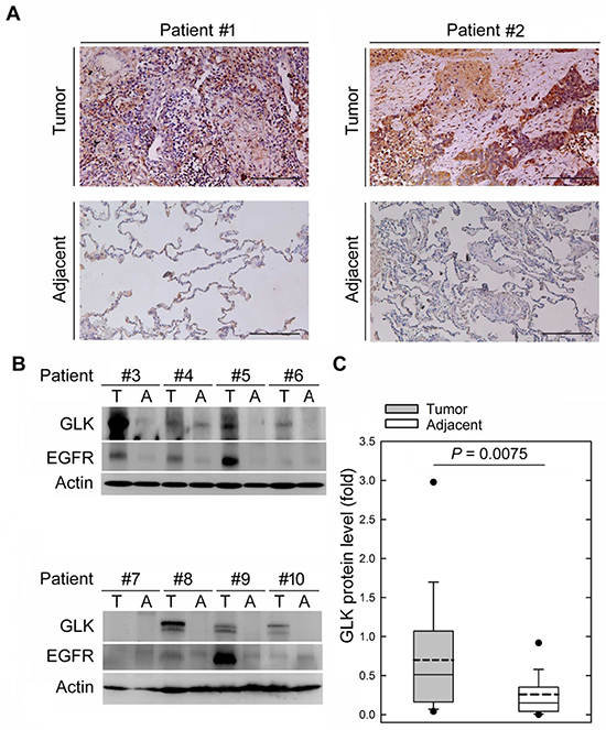 Elevated GLK protein levels in pulmonary tissues from NSCLC patients