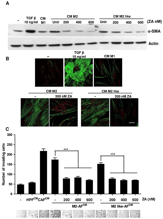 ZA reverts CAF-activated phenotype and their pro-invasive features