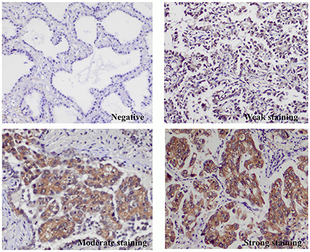 Figure 3: Representation of immunohistochemistry (IHC) staining of MET protein in pan-negative lung adenocarcinomas and MET exon 14 skipping positive non–small-cell lung cancers.