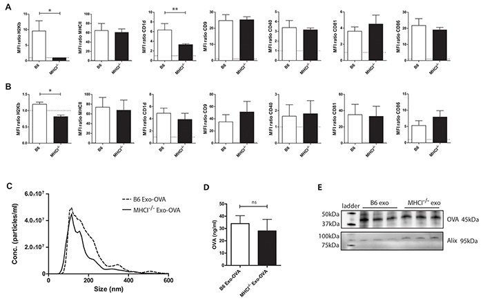 Phenotype of B6 and MHCI-/- dendritic cell-derived exosomes