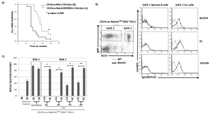 Notch2 in critical for CLL development in IRF4-/-Vh11 mice