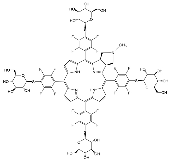 Figure 6: Chemical structure of G-chlorin. Glycoconjugated chlorin; 5, 10, 15, 20-tetrakis (4-(β-D-glucopyranosylthio)-2, 3, 5, 6- tetrafluorophenyl)-2, 3-(methano (N-methyl) iminomethano) chlorine