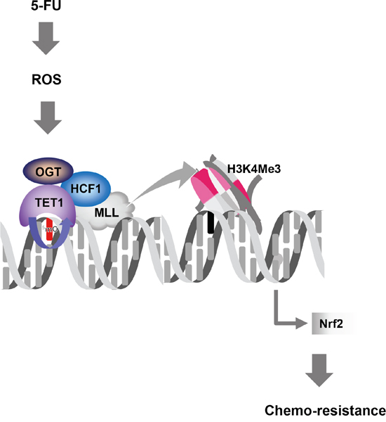 Recently, we demonstrated that TET1-mediated Nrf2 expression mediates 5-FU resistance in Colon cancer cells [13]. In the present study, we showed that expression of Nrf2 is upregulated via MLL-mediated histone modification and DNA demethylation.