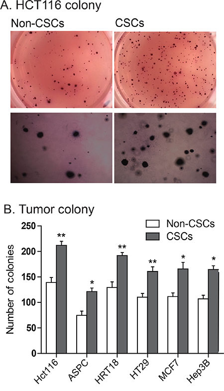 Enhanced tumor clonogenic activity in CSCs