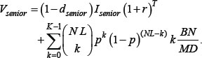 The frontier between the two cases determines the probability of default dsenior : when k successes that pay as much as what the senior tranche shall pay in the absence of default i.e.