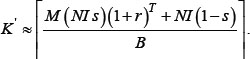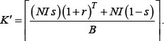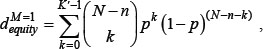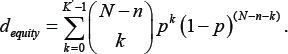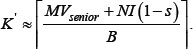 A number k of successes occur within the whole megafund and generate a value kB. On average MVsenior must be subtracted from that value in order to consider how much value remains for equity – that is where the approximation is done: we consider MVsenior as given whereas it is a random variable. The equity tranches default if that remaining value is insufficient to pay the equity investments i.e. if kB − MVsenior < Iequities. So the default is when k < K′ where