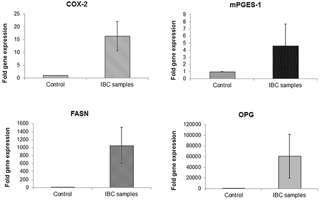 Total RNA was isolated with TRIzol Reagent (Life Technologies Corporation, Grand Island, NY) from inflammatory breast cancer tissue samples (Biochain, breast tumor tissue array T22350862-2) and treated with DNase I (Life Technologies Corporation) at 37°C for 30 min. Reverse transcription was performed using a High-Capacity cDNA reverse transcription kit (Life Technologies Corporation) and converted to cDNA, relative abundance of target gene mRNA was measured by qRT-PCR using the deltadelta method (ratio, 2[DCt sample-DCt control]) as described previously [73]. Transcripts of the genes of interest were detected by real-time RT-PCR using gene- specific primers as per procedures described previously [73]. Normalization was done with respect to GAPDH mRNA levels.
