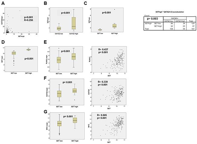 SET expression correlates with MYC, RUNX1 and GATA2 expression in AML patients