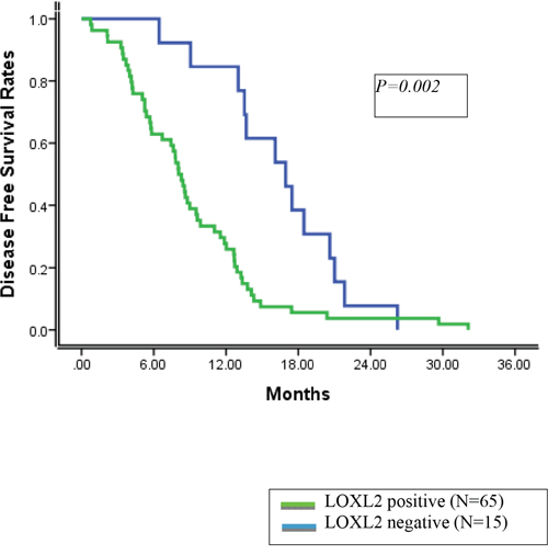 Figure 1: Disease free survival rates according to LOXL2 status.