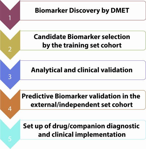 It must be taken into account that the multiplex nature of this assay maintains low the cost considering that it does not scale up by increasing the number of tested variants, allowing large-scale genotyping at a acceptable cost. Therefore, this approach may be useful to aid the comprehension of complex multigenic interactions that impact PK beyond the more simple monogenic models. In fact, it uses a single-microarray assay that allows for the comprehensive genetic analysis of genes involved in drug metabolism, transport, and excretion. Considering that a microarray-based approach permits that rare variants can be included in the assay with no appreciable increase in its complexity or cost, this assay results strongly powerful. The Affymetrix DMETTM platform includes an extensive list of genes involved in drug disposition, and may become an important tool for future PGx research. Nevertheless, certain limitations and caveats warrant attention. First and foremost, the DMETTM platform has not undergone, to our knowledge, evaluation to FDA as IVD, and cannot, therefore be used to inform clinical decisions. Thus DMETTM cannot, for example, be used to test patients prospectively to determine warfarin or irinotecan dose requirements, or for decision making on antiplatelet therapy. Whether Affymetrix intends to undergo FDA review for this device is not publicly known at the time of the current report. The implementation of this tool in the early stage of drug development may be of major relevance for the identification of patients at risk for ADRs providing a method to investigate better tailoring of drug regimens for individual patients. The platform could conceivably be applied to the study of other complex genetic interactions as the correlation between a PK/PD biomarker and the tumor phenotype. In fact, the understanding of the underlying relationship between drug exposure, biomarker and drug effect is crucial for the identification of clinically relevant outcome predictors and to assess their optimal evaluation timing. We believe that this tool will be critical for understanding the complex multigene interactions underlying drug metabolism and the integration with PK/PD tools can allow to analyze simultaneously both longitudinal biomarker and survival data, as in the current vision of precision medicine.